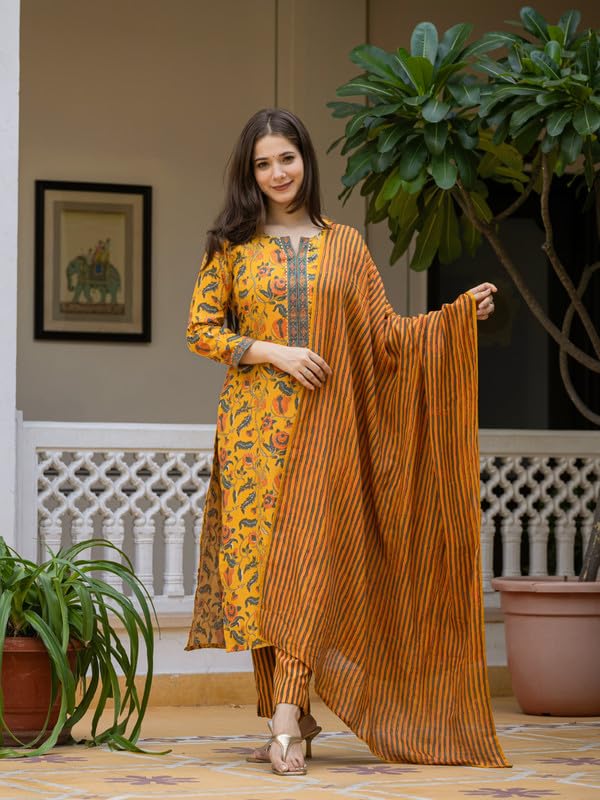 Vaamsi Women’s Rayon Blend Floral Straight Printed Kurta Pant With Dupatta Set
